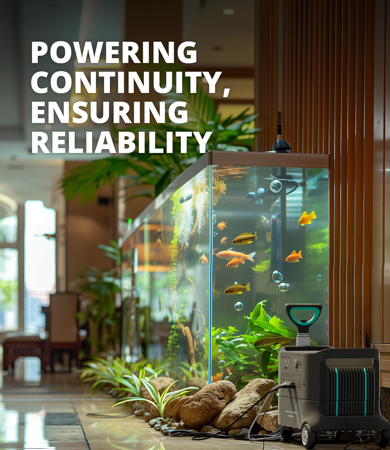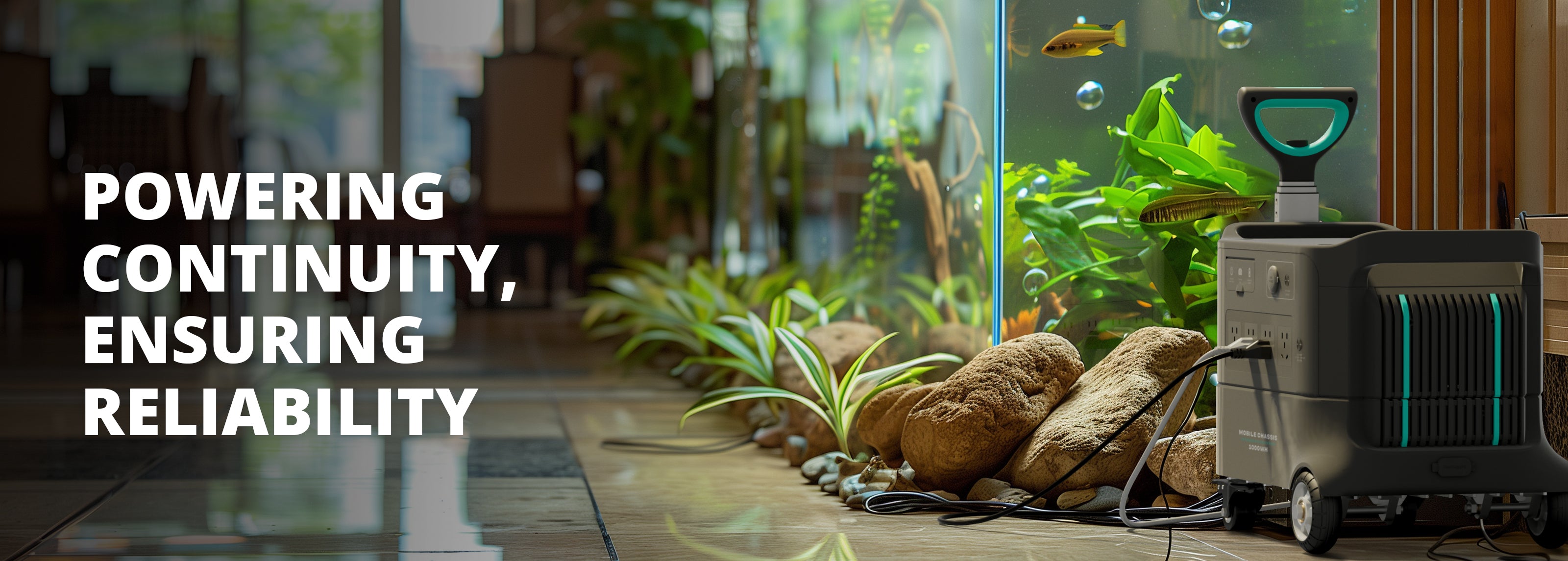 EnergyCan provides highly secure emergency backup power for aquariums, ensuring the safety and wellbeing of aquatic life and the functionality of essential systems. Whether it’s powering life support systems, water filtration, lighting, or environmental controls, EnergyCan ensures continuous power for all your critical devices. Our exclusive 0 downtime UPS technology guarantees a reliable and continuous power supply during unexpected outages, safeguarding your aquarium's operations.