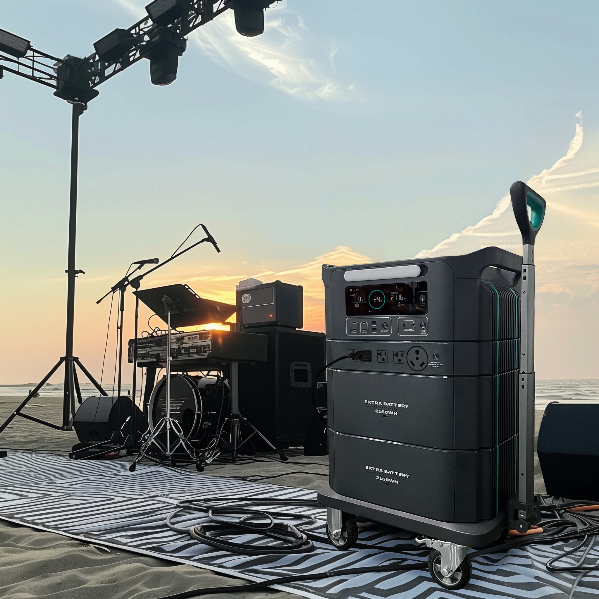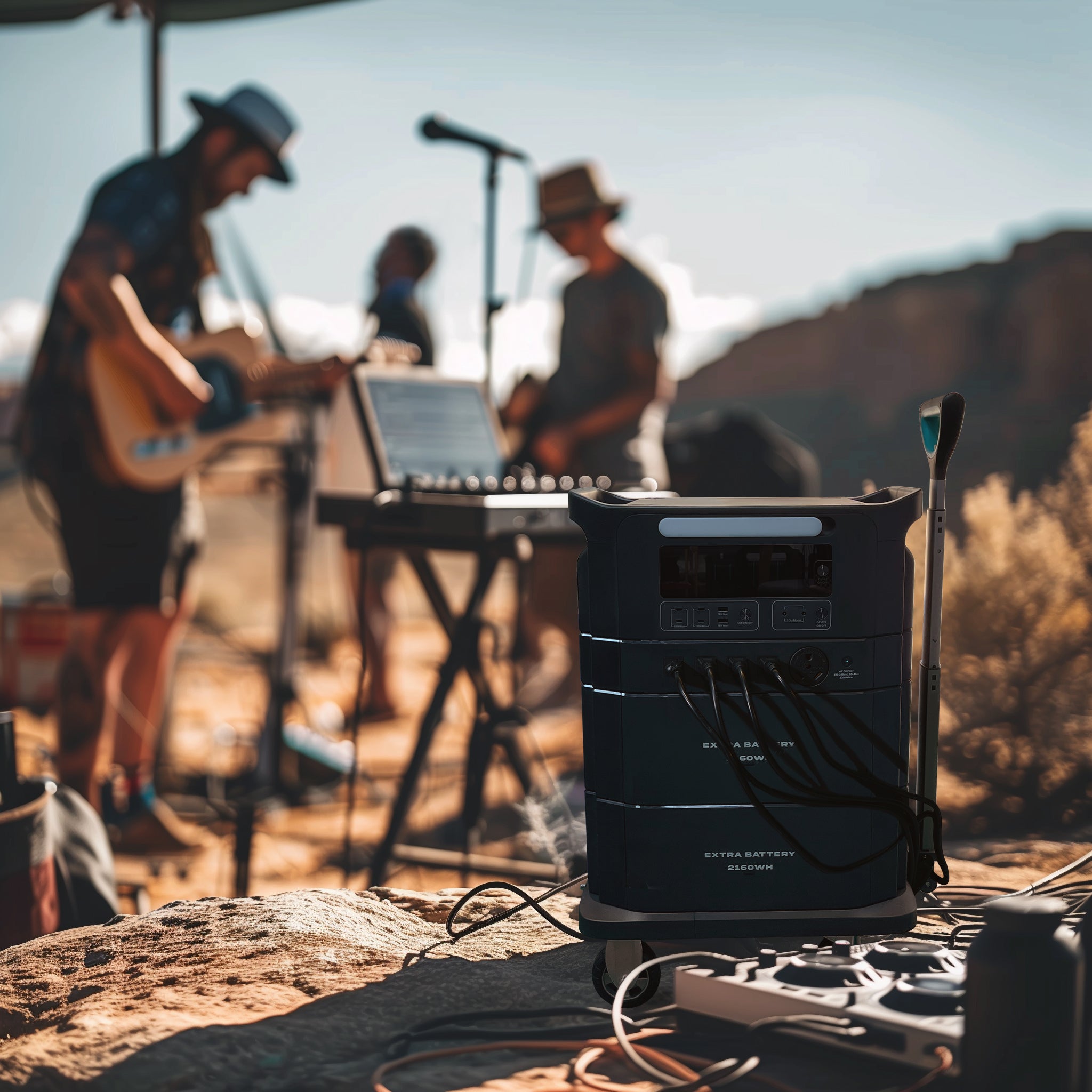 EnergyCan excels in powering small outdoor music events or markets. It offers scalable power, silent operation, and waterproof functionality with a protective cover, ensuring reliable performance for all your electrical needs in any weather.